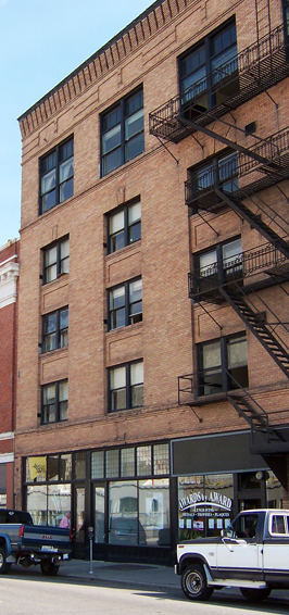 The detailed facades of these buildings lining the south side of First Avenue are reminders of the turn of the century building boom. The main floors were storefronts and the upper floors were rooms for the large numbers of workers who came to Spokane seeking work.