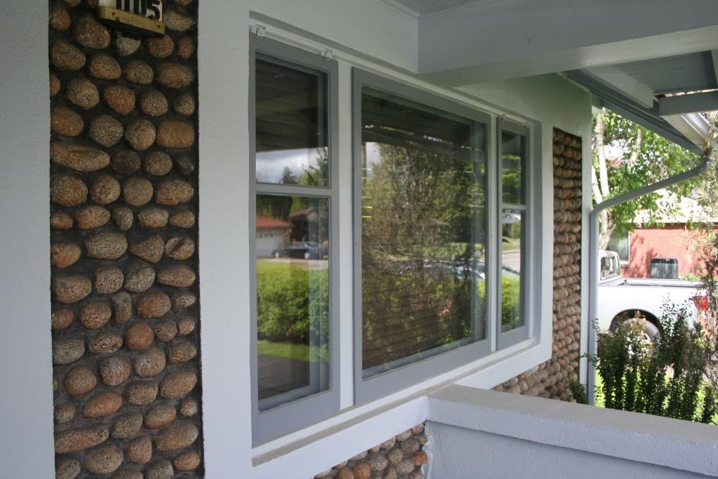 The exterior of this home on Broadway Avenue is a mixture of granite cobblestone construction and vinyl siding. The use of cobblestones extends to the landscaping of the property, specifically in the walls dividing the tiered lawn on the south side of the home. Constructed in 1920, there is no identifiable style attached to this home beyond the use of locally collected stones. The granite stones featured on the property make this home an important piece of Spokane Valley history and an excellent example of the possibilities cobblestone construction provides.